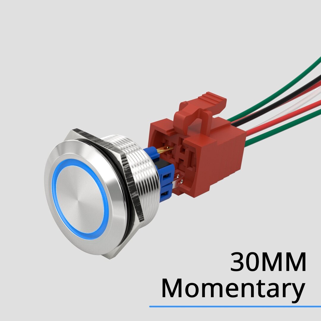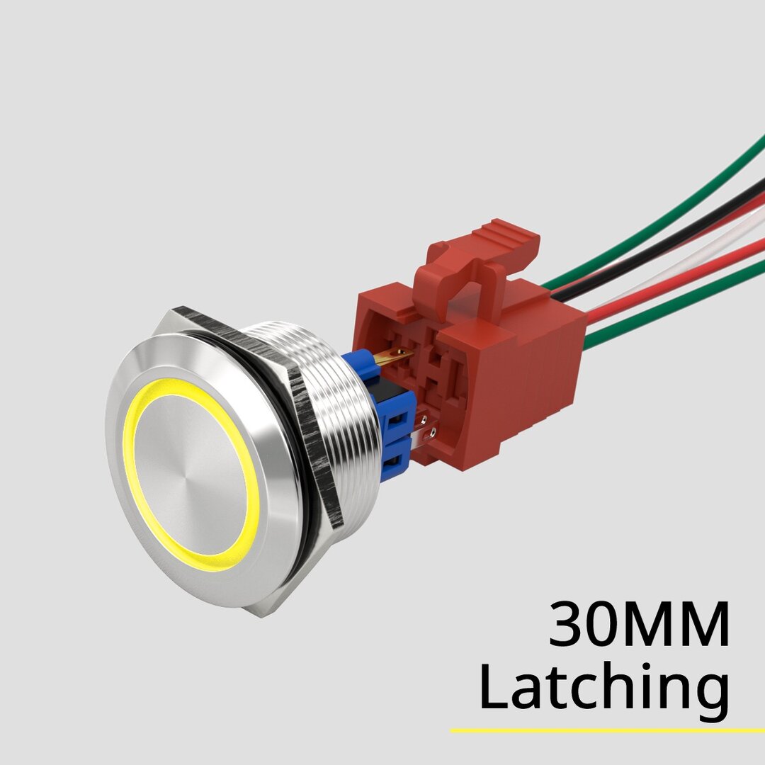 Codice: HBGQ30F-11E/J/S, Flat Ring LED da 30mm, IP67, 5 pin 1NO1NC, Colore: Rosso, Blu, Verde, Giallo, Bianco.