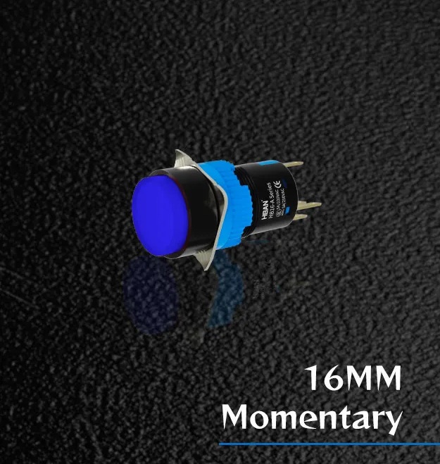 Codice: HBS1-AY-11D, Spot LED tondo da 16mm, IP65, 5 pin 1NO1NC, Colore: Rosso, Blu, Verde, Giallo, Bianco.