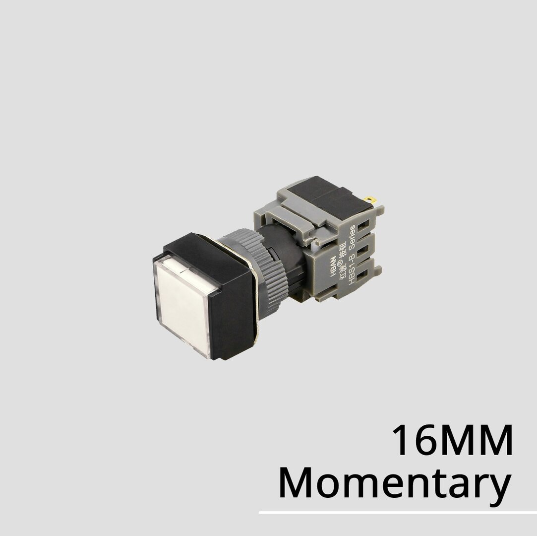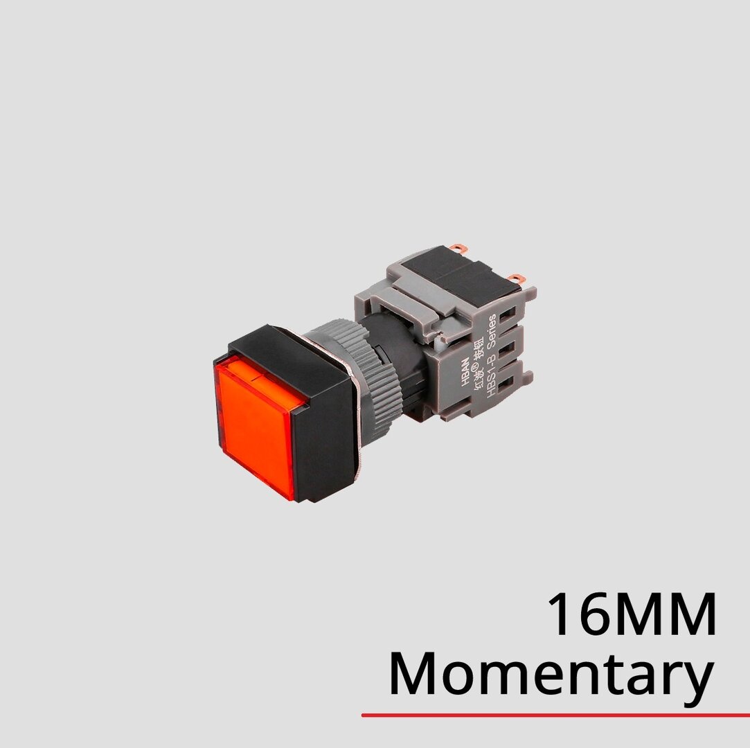 Codice: HBS1-BF-11D, Spot LED quadrato da 16mm, IP65, 5 pin 1NO1NC, Colore: Rosso, Blu, Verde, Giallo, Bianco.