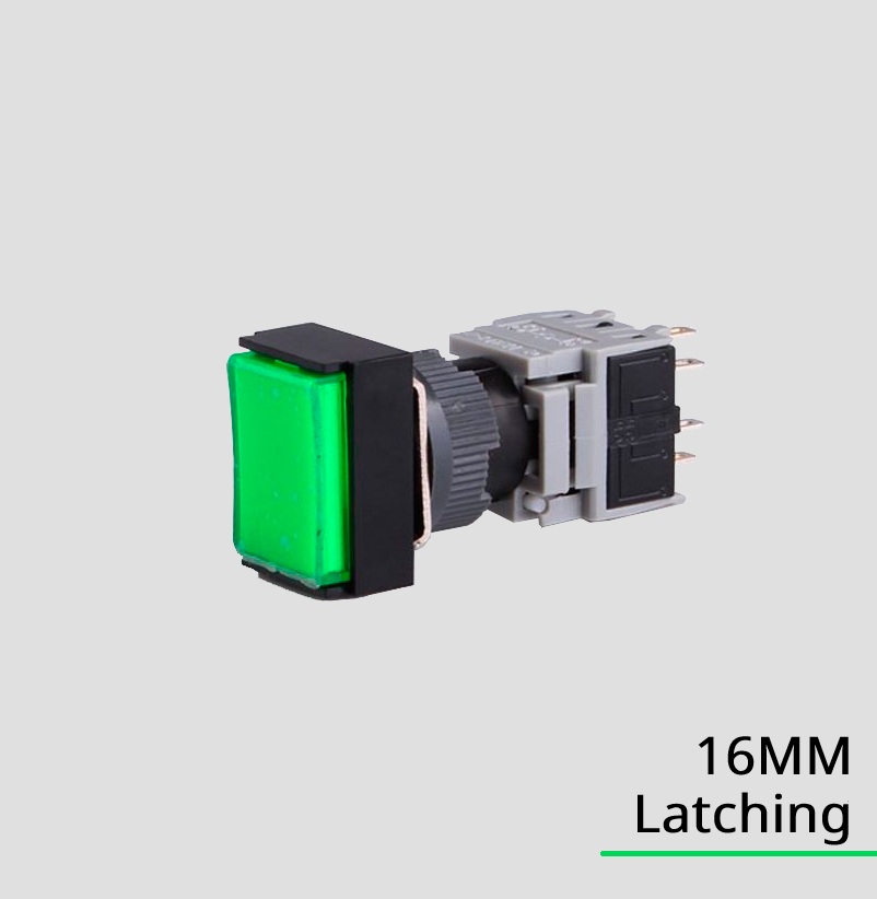 Codice: HBS1-BJ-22DZ, Spot LED rettangolare da 16mm, IP65, 8 pin 2NO2NC, Colore: Rosso, Blu, Verde, Giallo, Bianco.