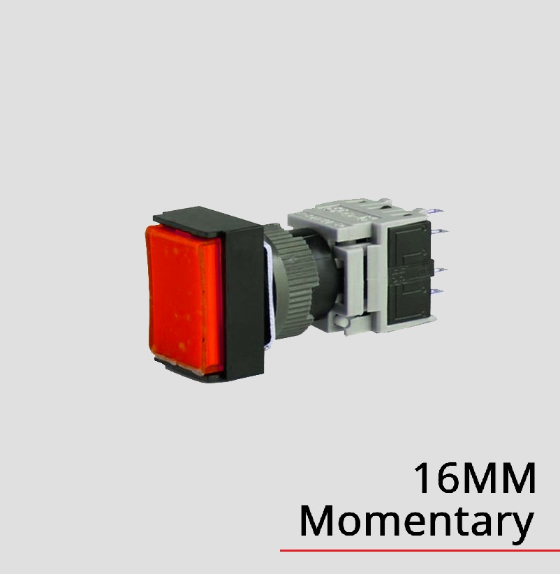 Codice: HBS1-BJ-11DZ, Spot LED rettangolare da 16mm, IP65, 5 pin 1NO1NC, Colore: Rosso, Blu, Verde, Giallo, Bianco.