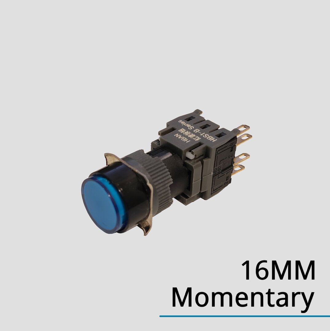 Codice: HBS1-BY-11D, Spot LED tondo da 16mm, IP65, 5 pin 1NO1NC, Colore: Rosso, Blu, Verde, Giallo, Bianco.