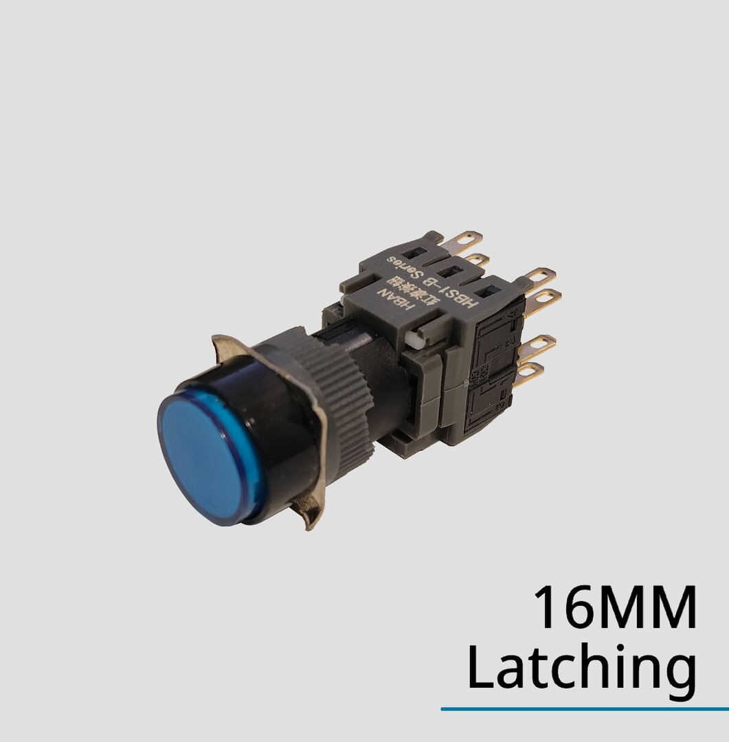 Codice: HBS1-BY-22D, Spot LED tondo da 16mm, IP65, 8 pin 2NO2NC, Colore: Rosso, Blu, Verde, Giallo, Bianco.