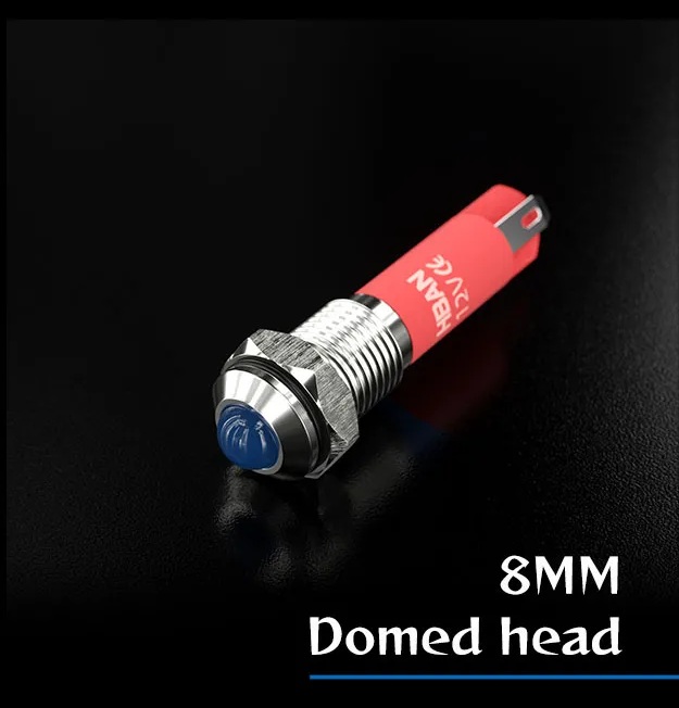 Codice: HBGQ8G-D/J/S, Domed da 8mm, IP67, 2 pin 1NO, Colore: Rosso, Blu, Verde, Giallo, Bianco.